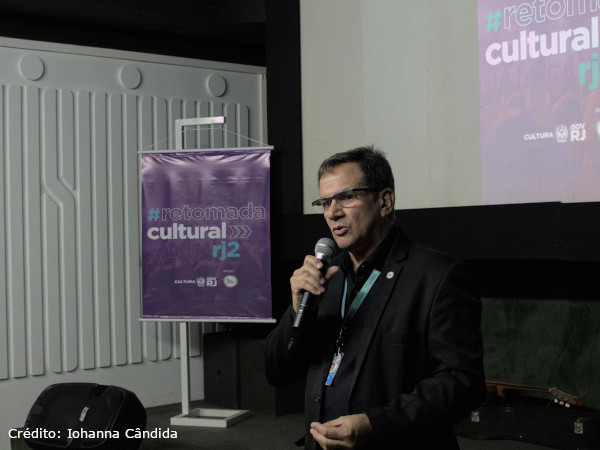 Presentes ao evento “Retomada Cultural RJ 2”, representando a SECEC, a presidente da Comissão de Editais, Diana de Rose, e Tatiana Salomão; o gerente da Rádio MEC, Empresa Brasil de Comunicação (EBC), Thiago Regotto; o presidente da Rádio Roquette-Pinto, Thiago Gomide; e o jornalista Michel Alecrim.