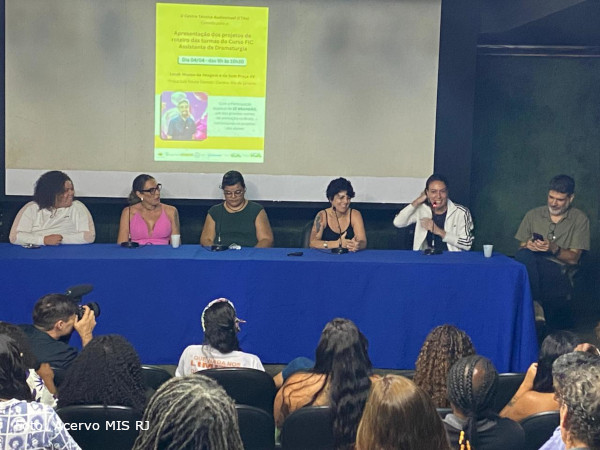 Nesta sexta-feira (4/4), o Museu da Imagem e do Som do Rio de Janeiro, na sede da Praça XV, recebeu a apresentação dos projetos de roteiro desenvolvidos pelas alunas do curso FIC de assistente de dramaturgia. A atividade faz parte do Programa Mulheres Mil, voltado à capacitação de mulheres cis e trans em situação de vulnerabilidade social. O evento contou com a presença especial do roteirista e produtor Zé Brandão, referência na área da animação no Brasil e sócio do Copa Estúdio, que comentou os projetos apresentados ao longo do dia.