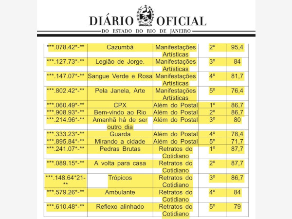 O resultado do concurso também foi publicado hoje, 27/11, no Diário Oficial do Estado do Rio de Janeiro.