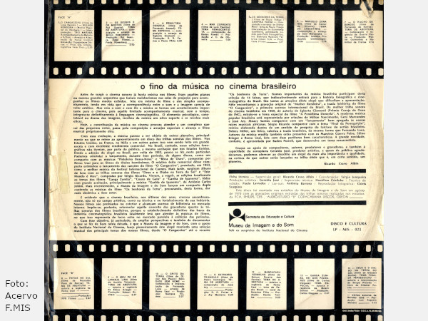 Com esse objetivo de documentar e valorizar a produção musical do cinema brasileiro, o Museu da Imagem e do Som lança este LP reunindo 14 faixas extraídas de filmes que marcaram época, desde “O Cangaceiro”, vencedor do prêmio de melhor música no Festival de Cannes em 1953, até produções mais recentes do período, como “Os Senhores da Terra”. Trata-se de um panorama amplo e criterioso da música criada para o cinema nacional ao longo de uma década decisiva.