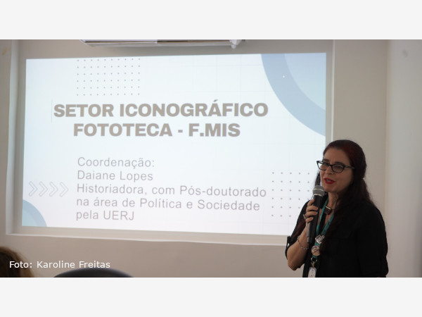 Daiane também apresentou outras atividades desenvolvidas pelo setor, como visitas técnicas para avaliação de acervos compatíveis com o perfil institucional, a elaboração do projeto da Fototeca e suas orientações de uso, a participação em podcasts e conteúdos para a Rádio MIS RJ, a pesquisa e seleção de imagens para peças de divulgação e exposições, além da atuação na série Depoimentos para a Posteridade, que envolve pesquisa, elaboração de pauta, organização documental, produção de material de divulgação e acompanhamento das gravações.